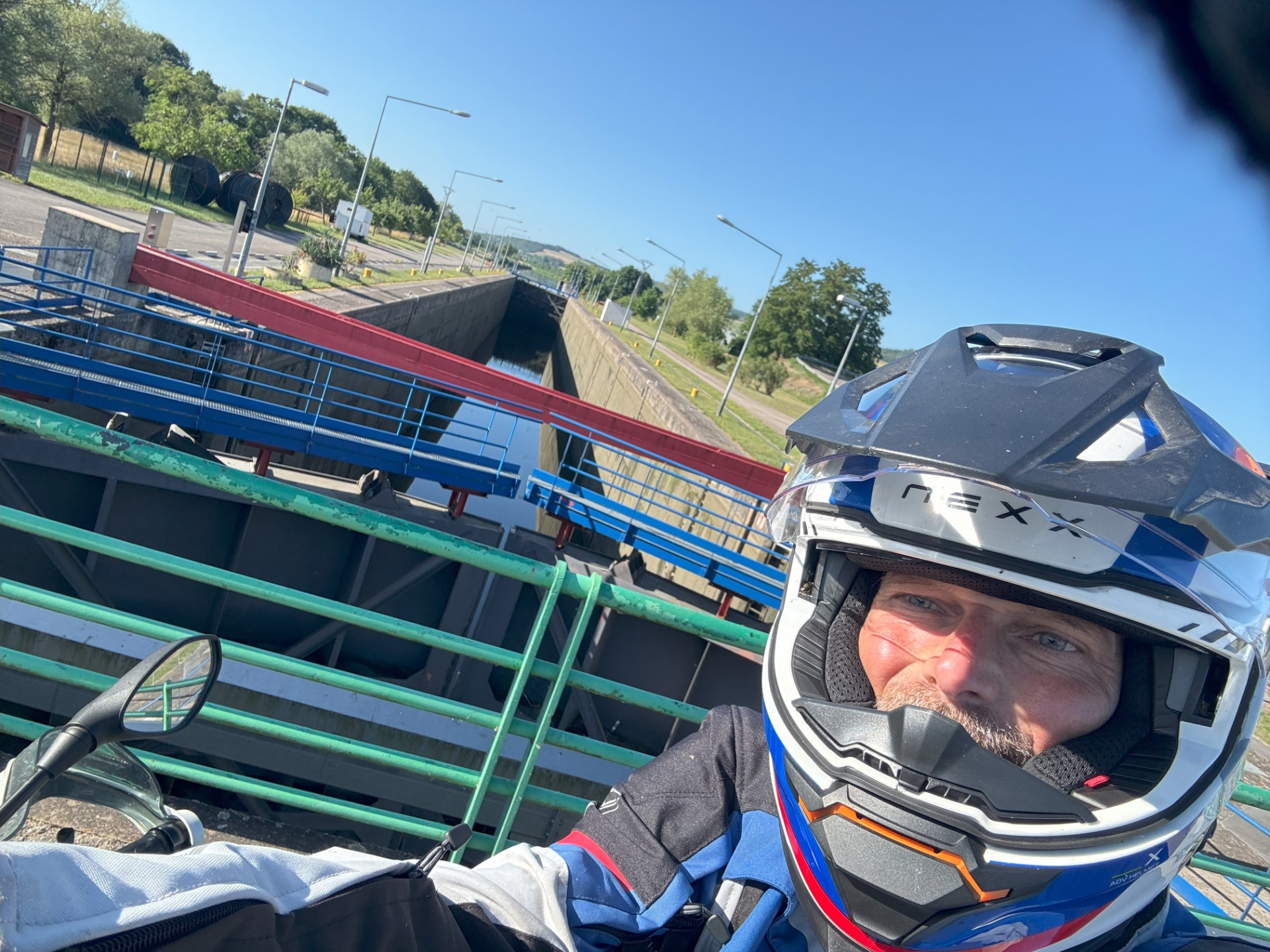 Besancon Day Trip. Ich hatte mich für 8:00 Uhr mit Pierre verabredet, um gemeinsam eine kleine Motorradtour zu machen. Ich war schon 5:30 Uhr wach bin aber wieder eingeschlafen und hatte vergessen mir einen Wecker zu stellen. Ich bin dann 7:30 Uhr wach geworden und habe sehr schnell gefrühstückt. Und tatsächlich 8:00 Uhr stand Pierre am Motorrad und wollte losfahren. Das ist verrückt. Normalerweise sind wir Deutschen die die immer super pünktlich sind und besonders ich. Aber egal wir sprang aufs Motorrad es waren morgens schon 25°. Es sah so aus, als ob es ein heißer Tag wird. Wir sind erst mal rausgefahren aus Besancon und waren sofort in grünen Wäldern und dort war die Temperatur erträglich. Als erstes steuerten wir ein sehr schönen Ausblick an. Für den mussten wir an einer Kirche parken und 10 Minuten bergauf laufen. Aber es war ein wundervoller Ausblick auf Felsen, die alle grün mit Bäumen bewachsen waren. Auf dem Gipfel stand ein Kreuz, was dem Ganzen noch ein zusätzliches besonderes Feeling gab. Danach fuhren wir weiter durch kleine Feldwege und Wälder und machten den nächsten Stopp an ein Biobauernhof. Dort tranken wir Kaffee und kauften für den Abend einige Biere. Das war auch sehr schön. Pierre kaufte noch eine besondere Wurst, die abends zubereiten wollte. Danach fuhren wir weiter durch die Landschaft und für mich war es sehr schwer das Tempo zu halten ,besonders in den Kurven. Pierre kannte die Gegend sehr gut und sein Motorrad ist um einiges schneller als meins. Und er hat Racing Reifen aufgezogen. Aber ich gab mir Mühe und es kostete mich wirklich Nerven, um dran zu bleiben. Deswegen war es gut, dass wir nur eine sechsstündige Tour geplant hatten. In diesen 6 Stunden waren natürlich die Stopps. Wir machten auch halt an dem Kloster. Im Inneren des Klosters war ein Restaurant und etwas ähnliches wie ein Biergarten und man konnte dort gut Pause machen. Ich holte uns zwei Bier und wir saßen und sprachen über sehr viel verschiedene Sachen. Ich habe gemerkt, dass Pierre Englisch nicht so gut kann, aber Deutsch unglaublich viel spricht. Nach dem Kloster fuhren wir weiter. Sehr viele Kurven, sehr viel kleine Wege, die aber alle im sehr guten Zustand waren und sind zum Schluss wieder in Besancon angekommen. Wir aßen eine kleine Mahlzeit, und ich ging dann in mein Zimmer. Ich machte einen kleinen Lauf an dem Fluss, und als ich wieder kam, einen kleinen Spaziergang durch die Stadt. Ich fand eine schöne kleine Parkbank und trank dort erst einmal Wasser und las etwas in meinem Buch. Danach bin ich noch einen Kaffee trinken gegangen in einem typisch kleinen schönen französischen Kaffee. Am Abend traf ich mich wieder mit Pierre und seine Tochter Anemone. Wir hörten verschiedene Musik. Sprachen über Bücher und Filme. Ebenso über Musik. Es ist ziemlich interessant. Pierre mag die gleichen Sachen wie ich bezüglich Bücher Filme und Musik. Und seine Frau liebt es im Garten zu arbeiten. Pierre machte dann die versprochener Wurst. Einfach mit ein bisschen Gemüse und Wein. Es war wunderbar. Gegen 23:00 Uhr waren wir dann wirklich müde und verabschiedet uns herzlich und ich habe ihn eingeladen nach Hannover zu kommen. Pierre hat mich auch eingeladen, hierher zu kommen und Dorit mitzubringen. Wir werden mal sehen, wie lange wir in Kontakt bleiben. Dorit hat mich auf eine gute Idee gebracht, ich werde, wenn ich wiedergekommen bin ein paar Sachen aus Hannover in ein Paket packen und mich noch mal für seine Gastfreundschaft bedanken.