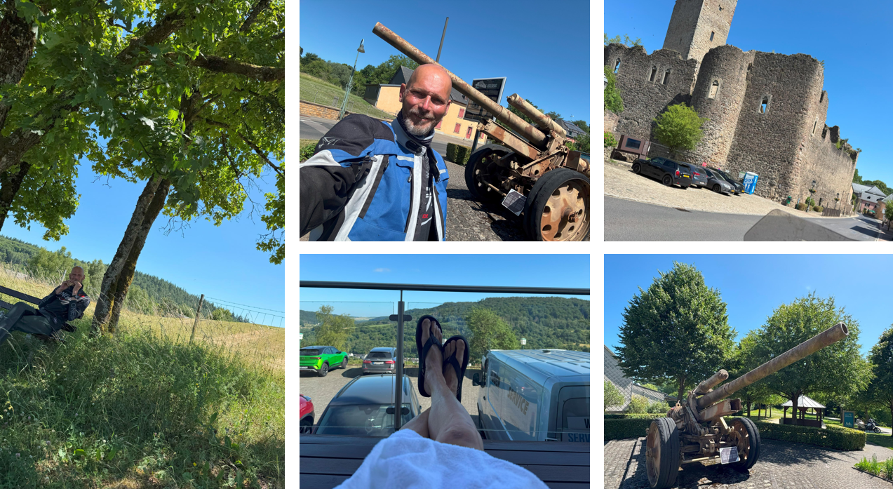 Nancy-Bollendorf Heute Morgen ganz entspannt aus Nancy losgefahren. Ich hatte mir vorsorglich für den ganzen Tag was zu Eessen mitgenommen, weil ich kleine Straßen fahren wollte. Das ging in Frankreich auch sehr gut. Ich bin erst über Landschaften gefahren, die viele Felder hatten und Kanäle. An einem Kanal machte ich auch meine erste Pause. Danach ging es so weiter nach Luxemburg. Luxemburg wiederum wurden die kleineren Straßen größer, was wohl auch daran liegt, dass Luxemburg nicht so groß ist. Die ersten anderthalb Stunden in Luxemburg waren genau genommen, völlig emotionslos. Ich war ziemlich angenervt, vielleicht auch sowas wie Tour Koller, da die Strecken irgendwie alle nicht wirklich zu einem gesprochen haben. Es war nicht wirklich schlecht, aber irgendwie stellte sich keine Entspanntheit beim fahren ein. Zum Glück nach über 2 Stunden in Luxemburg wurde die Landschaft hügeliger, ich war ganz im Norden von Luxemburg und Richtung Belgien und dann in Eifel gefahren. Umso näher die Eifel kam umso schöner wurden die Strecken. Am Ende bin ich über eine Brücke gefahren, an deren Ende Deutschland begann. Das war schon ziemlich komisch, plötzlich in Deutschland zu sein. Ich weiß noch gar nicht genau, ob ich mich freue wieder in Deutschland zu sein oder ob es etwas unvermeidliches ist. Andererseits bin ich in einem kleinen Wellnesshotel, kann ich ja in der Sauna drüber nachdenken. Ich bin eine Runde gejoggt , durch den Wald quer Feld ein. Wieder rüber nach Luxemburg über eine kleine Brücke und wieder zurück nach Deutschland. Danach wollte ich in die Sauna die war leider kalt. Also bin ich eine kleine Runde geschwommen und habe mich auf die Terrasse gelegt und einfach in die Landschaft geguckt. Am Abend habe ich mir ein Wildgericht gegönnt. Ich hatte mit Uwe telefoniert und er sagte, dass es okay ist , wenn ich morgen vorbeikomme. Ich werde also die letzte Nacht, bevor ich nach Hause fahre, noch bei einem guten Freund übernachten, was eigentlich ein schöner Tourabschluss ist. Ich bin mal gespannt, wie viel Uwe erzählt und wie viel ich erzähle.